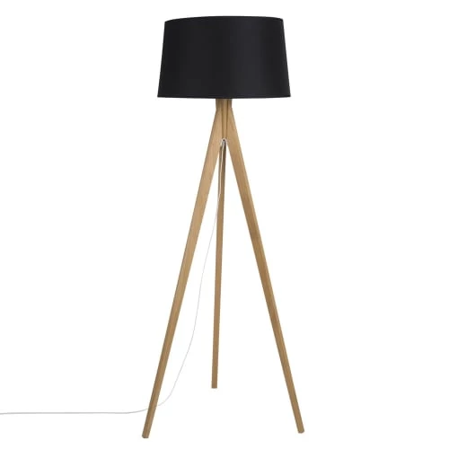 Nouveau 😉 Maisons Du Monde Lampadaires Lampadaire En Métal Doré Et Abat-jour En Coton Noir H181 🛒